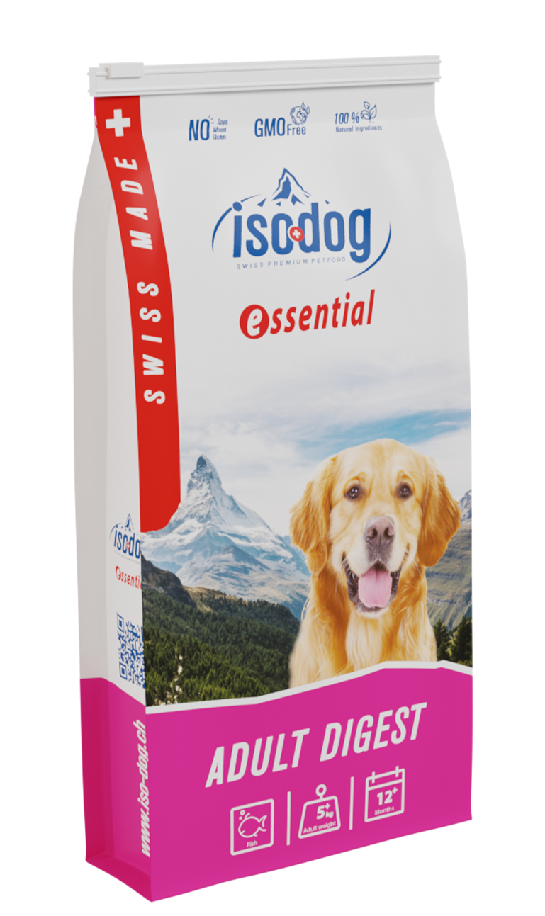 Iso-dog Essential Adult Digest Fish est un aliment de qualité supérieure, complet et équilibré, convenant à tous les chiens adultes délicats du système digestif.