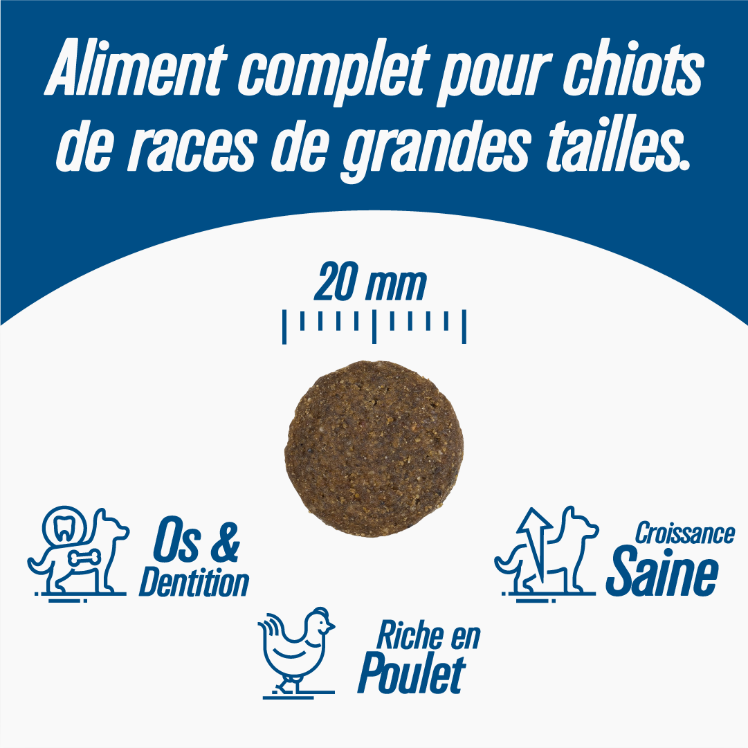 Iso-dog JUNIOR Crackers Large & Giant Breeds est un aliment complet équilibré pour chiots et jeunes chiens de races de grande taille (poids de l’adulte: > 25 kg), jusqu’au 12e-18e mois. Un contenu énergétique modéré, des protéines de haute qualité en suffisance et des teneurs en calcium et en phosphore adaptées aux besoins de votre animal, assurent un bon développement du squelette durant la longue phase de croissance. Les quantités nutritionnelles recommandées sont adaptées pour une croissance optimale du chiot.