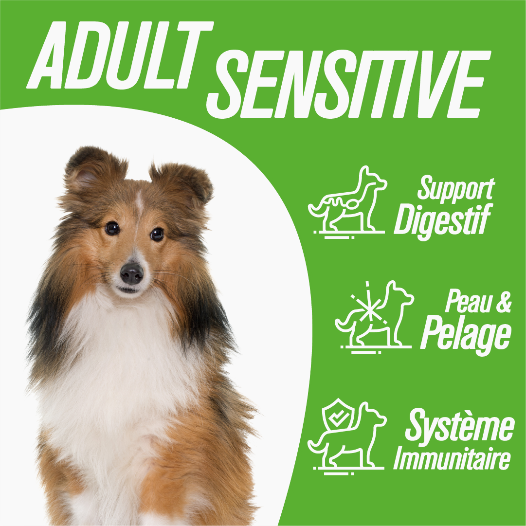 | Utilisation | Chien au pelage ou à la peau sensible Chien délicat du système digestif |