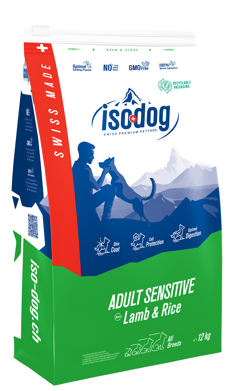 Iso-dog SENSITIVE Lamb & Rice All Breeds est un aliment complet sans gluten pour les chiens sensibles de toutes races à partir d’environ 12 mois.